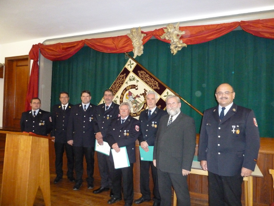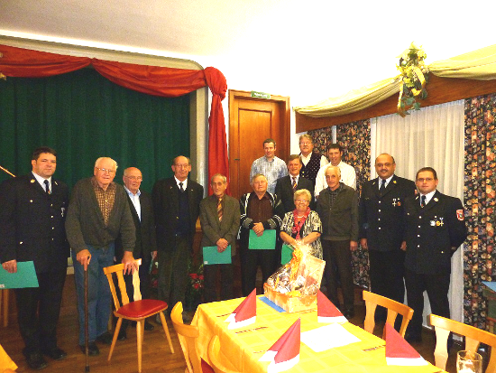 Am 17. November versammelte sich die Freiwillige Feuerwehr zu ihrem alljährlichen Kameradschaftsabend beim Gasthof „Zur Post“. Dieser Kameradschaftsabend ist wie in jedem Jahr als Dankeschön an alle aktiven und passiven Mitglieder für ihre Hilfe im vergangenen Jahr gerichtet. Auch 2012 werden einige Mitglieder für ihre langjährige Treue geehrt. Ebenso erfahren erstmalig seit einigen Jahren zwei Kameraden die Ernennung zum Ehrenmitglied. Vorstand Johann Pröll konnte als Vertreter der Landkreisinspektion Kreisbrandrat Alfred Zinsmeister und als Vertreter der Gemeinde den 1. Bürgermeister Karl Hörmann, den 2. Bürgermeister Erwin Almer sowie die Gemeinderäte Annemarie Sauler und Christian Kaiser begrüßen. In seiner Ansprache erklärt Johann Pröll, dass viele Ämter, die es früher gab, heute nicht mehr existieren, die Aufgaben dieser Ämter aber weiter bestehen bleiben. Deshalb gebe es nun das Ehrenamt. In vielerlei Hinsicht unterscheidet sich dieses Amt zwar von offiziellen, staatlichen Ämtern. Aber es bleibt ein Amt, das einen zuverlässigen Einsatz verlangt. Würden alle Ehrenamtlichen in Gablingen ihr Amt für einen Tag niederlegen, würden nach Vorstand Pröll einige Räder still stehen. Ehrenamtlich tätig zu sein heißt für den Nächsten tätig zu sein und sich nicht selbst in den Mittelpunkt zu stellen. Der Leitspruch der Feuerwehr „Gott zur Ehr dem Nächsten zur Wehr“ macht dies sehr deutlich. Johann Pröll appelliert an die Vereinsmitglieder, den Dank des Vereins, des Landkreises sowie der Gemeinde und vor allem ihrer Bürger zu empfangen und dann auch anzunehmen, denn es ist wichtig für alle ehrenamtlich Tätigen zu wissen, dass ihr Einsatz und ihr Engagement nicht übersehen werden. Im Anschluss seine Rede ehrt Johann Pröll 19 Vereinsmitglieder für ihre 25-, 40-, 50- und sogar 60-jährige Vereinstreue. Für 25 Jahre geehrt werden Bernhard und Stefan Wollmann. Für 40 Jahre Mitgliedschaft Georg Link, Karl – Heinz Schulze, Josef Echter, Adolf Zogler, Erwin Auernhammer, Michael Schuster und Günther Frede. Bei Günther Frede bedankt sich Johann Pröll außerdem mit einem Geschenkkorb für die langjährige Gestaltung der Urkunden. Für 50 Jahre Mitgliedschaft im Verein bedankt sich der Vorstand bei Helmut Kratzer, Erich Kernen, Michael Schmid, Jakob Plöckl und Anton Kutter. Die Besonderheit einer Ehrung für 60-jährige Mitgliedschaft erhalten Konrad Harle und Michael Sailer sen.. Im Namen aller Mitglieder der Freiwilligen Feuerwehr Gablingen bedankt sich die Vorstandschaft für die langjährige Vereinstreue der Jubilare. Die 40jährige aktive Mitarbeit von drei Mitgliedern der aktiven Wehr erkennt der Vorstand ebenfalls an. Herrn Leonhard Stegmüller dankt die Vorstandschaft für seine langjährige Mitarbeit als Fähnrich und Löschmeister, sowie Herrn Anton Rager für seine Tätigkeit als Gerätewart und Mitglied der Vorstandschaft. Herrn Erwin Almer wird ebenfalls im Namen der gesamten Wehr ein herzliches Vergelts Gott ausgesprochen. Zum Schluss der Ehrungen hat Johann Pröll das Vergnügen zwei Männer, die sich besonders in der Feuerwehr verdient gemacht haben, zu Ehrenmitgliedern zu ernennen. Die Kameraden Xaver Jäger und Michael Wiedemann haben sich in ihrer langjährigen aktiven Dienstzeit außerordentlich für den Verein und die Gemeinde eingesetzt. Beide haben während ihrer Tätigkeit viele Aufgaben unternommen. Sie waren als Fähnrich, Löschmeister und Kommandanten, sowie als Hausmetzger bei verschiedensten Festen für den Verein tätig. Natürlich waren sie auch bei der Beschaffung vieler Feuerwehrautos und dem Neubau des damaligen Gerätehauses 1971 dabei. Besonders verdient gemacht haben sie sich in der Jugendarbeit der Gablinger Feuerwehr, denn sie waren Gründungsmitglieder der Jugendgruppe 1975. Als Erinnerungsgeschenk und Dankeschön erhalten die neu ernannten Ehrenmitglieder eine Armbanduhr mit persönlicher Gravur. Vielen Dank an alle geehrten für ihre Mitgliedschaft und langjährige aktive Mitarbeit bei der Freiwilligen Feuerwehr Gablingen.