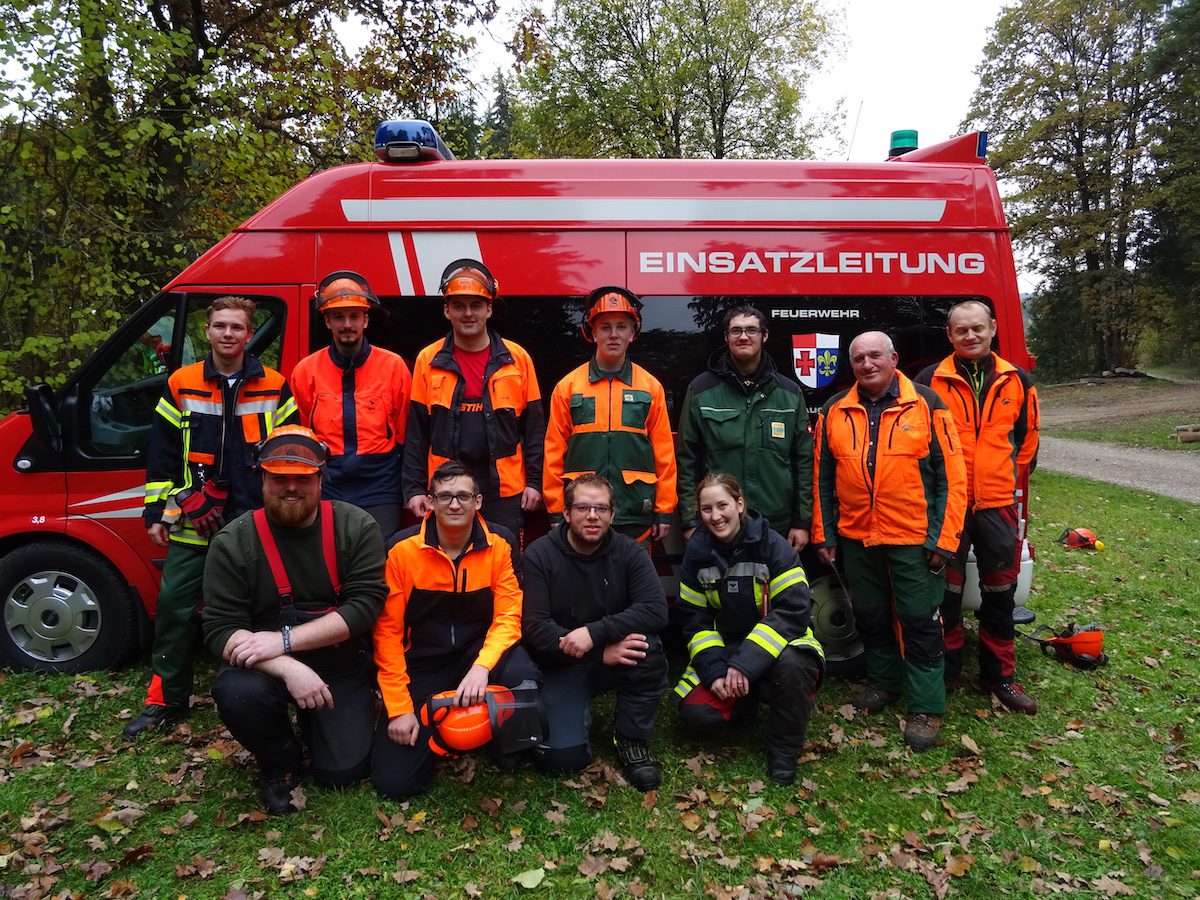 In einem zweitägigen Lehrgang wurden neun Kameraden sowohl im theoretischen als auch im praktischen Umgang mit der Kettensäge geschult und so für diese Art von Einsätze vorbereitet. So lernten und vertieften die Kursteilnehmer das Fällen mit verschiedenen Fälltechniken und das Aufarbeiten der gefällten Bäume. An einem Spannungstrainer konnten die Teilnehmer gezielt das Aufsägen unter Spannung stehender Bäume üben.