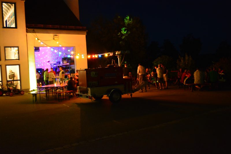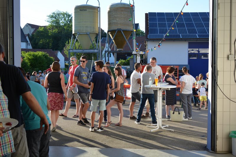 Nach der Begrüßung durch den 1. Vorstand Christian Kaiser wurde der neue große Grill mit Grillgut bestückt. Für das leibliche Wohl war mit Bratwürsten, Schweinefleisch, Putensteaks, kalten Getränken und vielen leckeren Salaten bestens gesorgt. Wer nach dem Essen noch Verlangen nach einem Absacker verspürte, konnte diesen an der Floriansbar in der Waschhalle stillen.