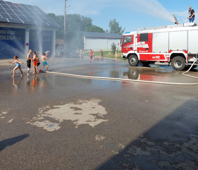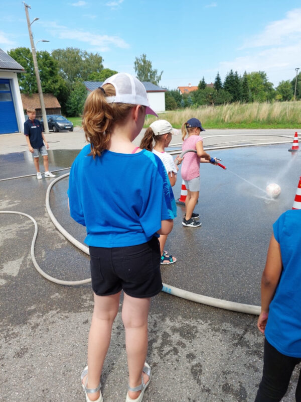 Unter dem Motto „Spiel und Spaß bei der Feuerwehr“ begrüßte die Feuerwehr Gablingen am 14. August auch in diesem Jahr wieder zahlreiche Kinder beim Ferienprogramm im Feuerwehrhaus. Zu aller Freude konnte der geplante Nachmittag bei bestem Wetter stattfinden. Getreu dem Thema galt es für die Kinder Aufgaben an verschiedenen Stationen gemeinsam zu bewältigen. Gleichzeitig erhielten die Kinder dabei Einblicke in die Feuerwehr. Beim Schlauch-Fußball wurde mit Hilfe eines D-Schlauches versucht einen Ball in das Tor zu schießen. Und auch das Leinenbeutel-Kegeln und ein Feuerwehrquiz erforderten das Geschick und Wissen der Kinder. Das Highlight des Nachmittags war eine große Wasserschlacht zum Austoben und Abkühlen bei sommerlichen Temperaturen. Anschließend folgte die Siegerehrung. Zum Abschluss und als Stärkung gab es für alle Leckeres vom Grill und Eis. Das laute Kindergelächter sowie die ausgelassene Stimmung und gute Laune waren die Bestätigung für eine gelungene Aktion.