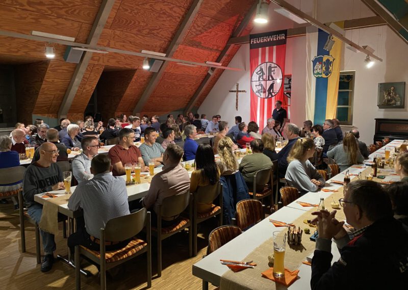Zum traditionellen Kameradschaftsabend lud die Freiwillige Feuerwehr Gablingen am vergangenen Samstagabend alle Vereinsmitglieder mit Begleitung ins Pfarrheim St. Martin ein. Der Einladung folgten zur Freude aller neben der stark vertretenen Jugend auch wieder zahlreiche langjährige und treue Mitglieder. Nach dem Eintreffen der Gäste begann der gemeinsame Abend kurz nach 19:30 Uhr mit dem offiziellen Teil, wobei in diesem Jahr keine Ehrungen auf dem Programm standen. Vorstand Christian Kaiser begrüßte alle Anwesenden herzlich und gab neben dem Termin für einen geplanten Vereinsausflug nach Bamberg im nächsten Jahr auch die Anmeldung zum anstehenden Kesselfleischessen aller Vereinsmitglieder Ende diesen Monats bekannt. Außerdem bestand in diesem Jahr erneut die Möglichkeit zur Vorbestellung eines individuell gestalteten Feuerwehrkalenders für 2024 mit Impressionen und Bilder aus dem Vereinsleben. Auf den offiziellen Part des Abends folgte schließlich der gemütliche Teil und beim gemeinsamen Abendessen und Beisammensein kam eine ausgelassene Stimmung mit guter Laune auf, die bis spät in den Abend hinein anhielt. Ein großes Dankeschön richtet sich an alle, die wieder mal zu einem gelungenen Vereinsabend beigetragen haben!