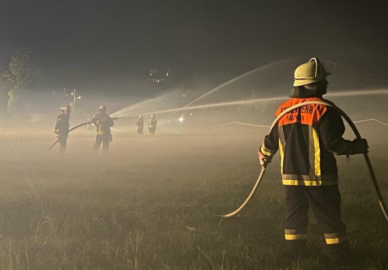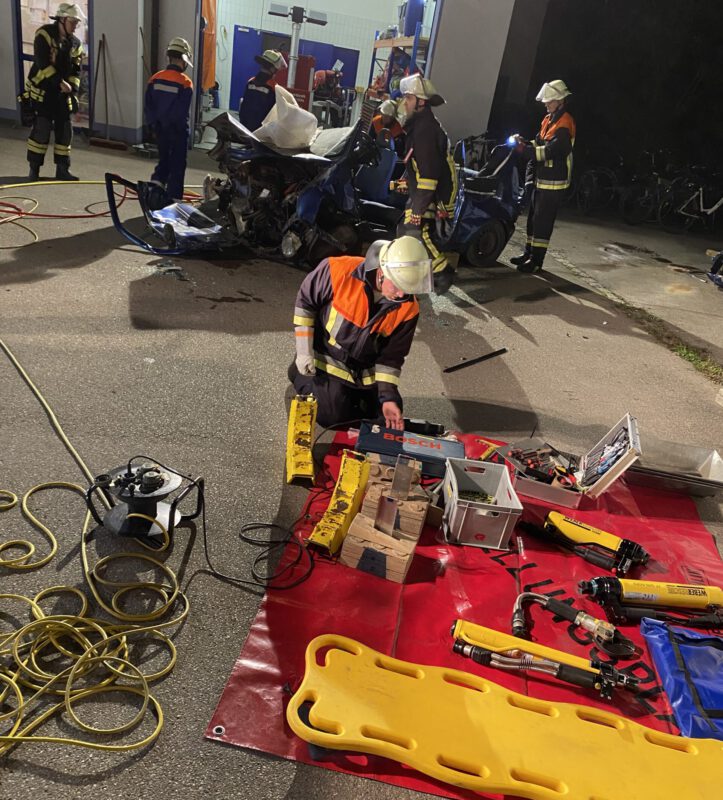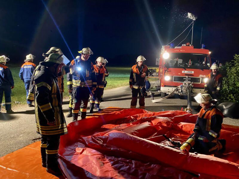 Am 05. Oktober begrüßte Kommandant Dominik Merktle zur letzten Herbstübung in diesem Jahr, bei der sich alles rund um das Thema technische Hilfeleistung drehte. An drei Stationen stand das Arbeiten mit Einsatzmitteln wie Mehrzweckzug, Stab-Fast-System sowie der Umgang mit dem Rettungssatz, der sich aus einer hydraulisch betriebenen Schere und einem Spreizer zusammensetzt, im Vordergrund. Alle Hilfsmittel dienen zur Absicherung von Fahrzeugen sowie zur Befreiung von Personen und müssen von den Einsatzkräften beherrscht werden. Bereits in den übungsreichen Wochen zuvor stellte sich die aktive Wehr verschiedenen Szenarien, die den Ernstfall darstellten. Unter anderem wurde eine gemeinsame Übung zum Thema Flächenbrände abgehalten, denn hohe Temperaturen im Sommer und die oftmals verheerenden Folgen der Trockenheit auf Feldern, Wiesen und Wäldern machen sich vermehrt bemerkbar. Um auf den Katastrophenfall bestens vorbereitet zu sein, simulierten die Verantwortlichen auf den Wiesen hinter dem Feuerwehrhaus in Gablingen einen Brand. Mit der Alarmierung rückte die Mannschaft zunächst in den voll besetzten Fahrzeugen aus und positionierte sich wie vom Einsatzleiter angeordnet am gegebenen Standort. Anschließend begannen die ersten Trupps mit der Brandbekämpfung durch Einkesselung des Feuers, während parallel die Wasserversorgung aufgebaut wurde. Die Wasserentnahme erfolgte mit Saugschläuchen sowie einer Pumpe an der Schmutter und wurde zur Speisung der Fahrzeuge in einen großen Faltbehälter befördert. Fast reibungslos und innerhalb kürzester Zeit erfolgte der Löschaufbau. Die Ausgangslage eines weiteren Übungsszenario zum Thema Brand war ein in Flammen stehender Keller mit vermisster Person. Gerade für die Atemschutzgeräteträger, die sich als Angriffstrupp zur Personensuche im Gebäude befanden, galt das aufgrund der starken Rauchentwicklung und der eingeschränkten Sicht als Herausforderung. Das Seil eines Leinenbeutels markierte für den Trupp den Rückweg, denn in solchen Situation ist es wichtig Ruhe zu bewahren und die Orientierung nicht zu verlieren. Szenarien wie diese werden bei der Feuerwehr Gablingen regelmäßig und so realitätsnah wie möglich geübt, denn nicht nur das fachliche Wissen jedes einzelnen sondern auch die Teamarbeit, die essenziell für die Arbeit bei der Feuerwehr ist, wird dadurch gestärkt. Bei den Übungen werden auch die jungen Feuerwehranwärter mit einbezogen, um zu unterstützen und sich Arbeitsabläufe einzuprägen. Zwischen 34 und 38 Personen beteiligten sich jeweils an den insgesamt drei Herbstübungen, denen ein großes Dankeschön für ihr freiwilliges Engagement und das rege Mitwirken an den Übungen gilt! Bedanken möchten wir uns auch bei der Firma Baur Autoverwertung, die uns die Schrottautos zur Verfügung stellt.